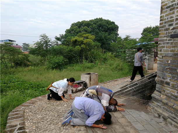 早上隊員們照樣4點多起床在永定古寺參加早課,早課后演定法師帶領居士們拜塔、繞塔。早餐后與永定古寺的主持果華法師等人愉快合影,感恩果華法師等人的熱情款待。七點半出發,開始了今天的行腳旅程。上午太陽雖然很大,但現在過了白露,也不覺得特別的熱和曬。路上,看到一只因車禍橫死的小麻雀,演定法師慈悲的將它掩埋并誦往生咒超度。